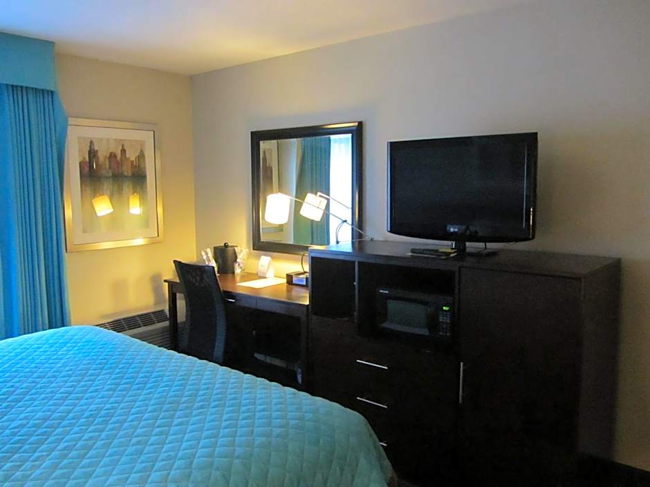 This air conditioned room features a flat-screen TV, refrigerator and microwave.